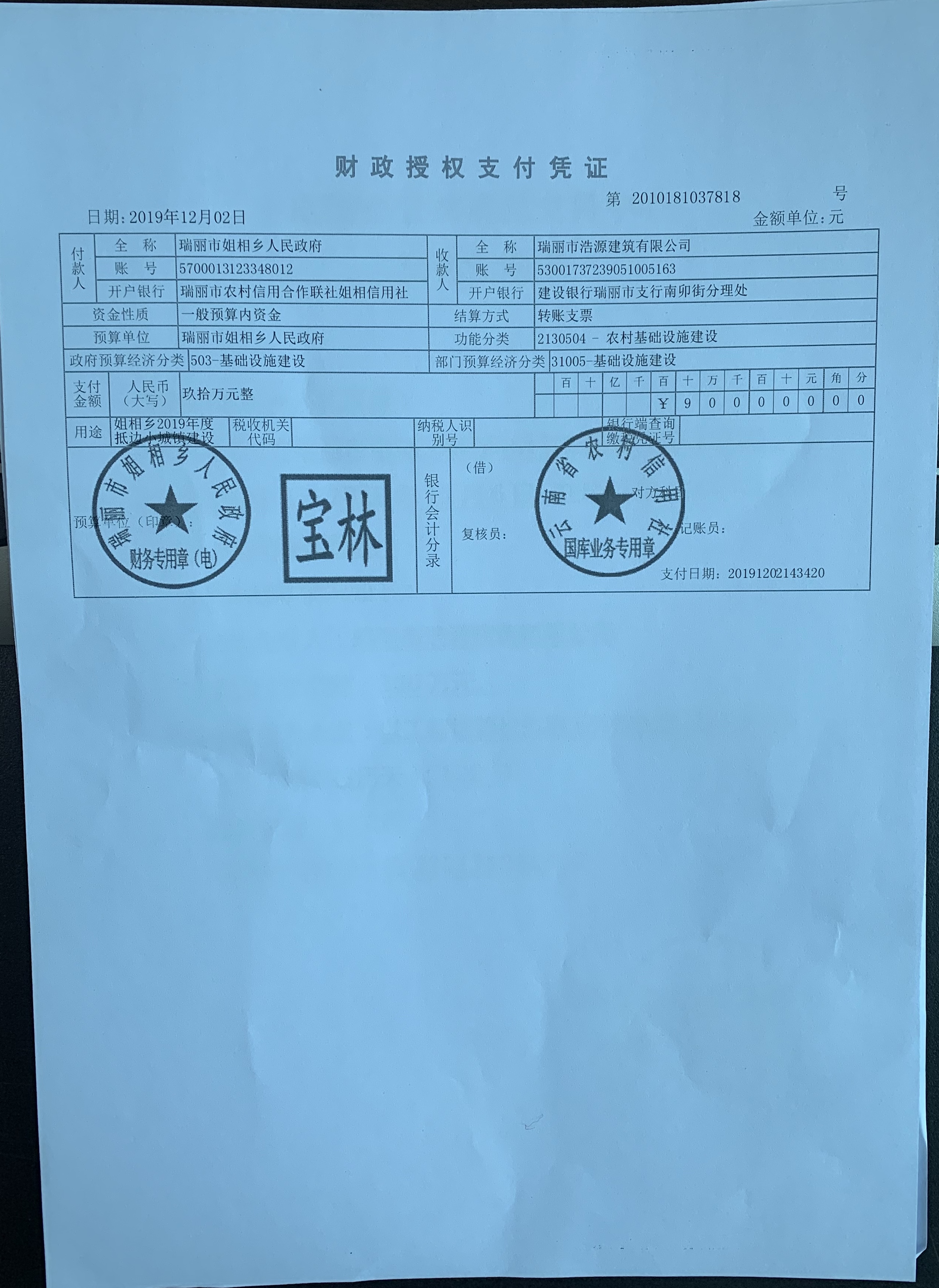 姐相乡抵边小城镇项目建设资金按照3:4:3比例进行拨付工程款,即,开工支付30%工程预付款,施工进度达到工程总量60%后支付40%进度款,竣工验收合格后再支付工程尾款30%。项目已顺利进场,拨付30%的工程预付款,共90万元。