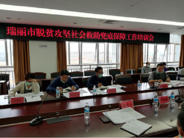 为认真贯彻落实国家和省、州关于脱贫攻坚社会救助兜底保障任务,切实完成好云南省民政厅、云南省人民政府扶贫开发办公室印发的云南省脱贫攻坚社会救助兜底保障“兜准、兜住、兜牢”行动方案的工作要求,全面精准落实脱贫攻坚兜底保障职责任务,确保农村低保与扶贫政策、对象、标准、管理有效衔接,助力打赢全州脱贫攻坚战,3月5日下午,在瑞丽市人民政府7楼2号会议室举办脱贫攻坚社会救助兜底保障工作培训会。会议对《云南省脱贫攻坚社会救助兜底保障“兜准、兜住、兜牢”行动方案》进行专题辅导培训,并就相关工作进行部署,确保脱贫攻坚社会救助兜底保障工作目标任务按时按质完成。