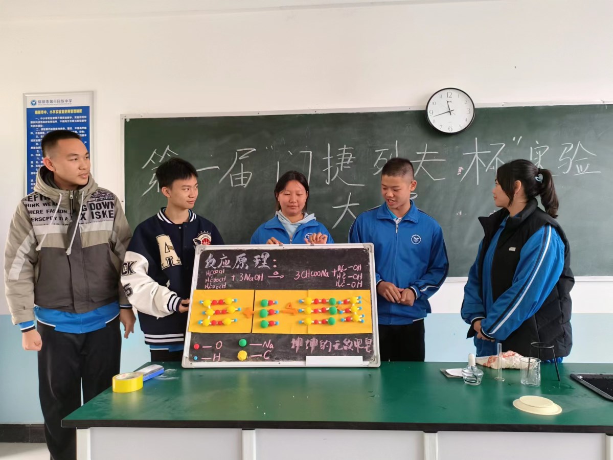 化学是在原子、分子水平上研究物质的组成、结构、性质及变化规律的基础自然科学,亦是一门发现物质之美、创造创造结构之美的学科。为提升学生的化学学科核心素养、培养学生的创新精神和实践能力,瑞丽市第三民族中学高中部勠力同心,精心策划,开展了“门捷列夫杯”实验大赛。通过利用生活中的材料进行模型制作,让学生体会化学物质之美、结构之美。