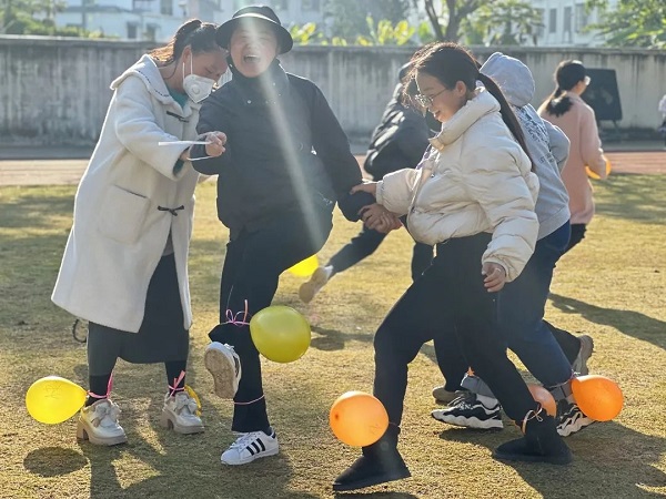 一个个互动游戏轮番上场,一声声欢笑渲染气氛,整个校园弥漫着轻松愉悦的气息,教师们的烦恼和压力进一步得到舒缓。