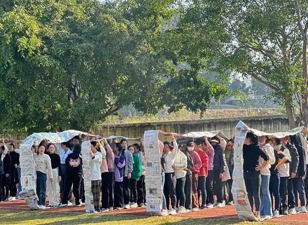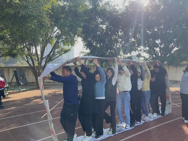团结就是力量,团队就是未来。老师们用一张张报纸制作成一个个“车轮”,大家齐心协力,共同前进,充分体现了团队协作的强大力量。
