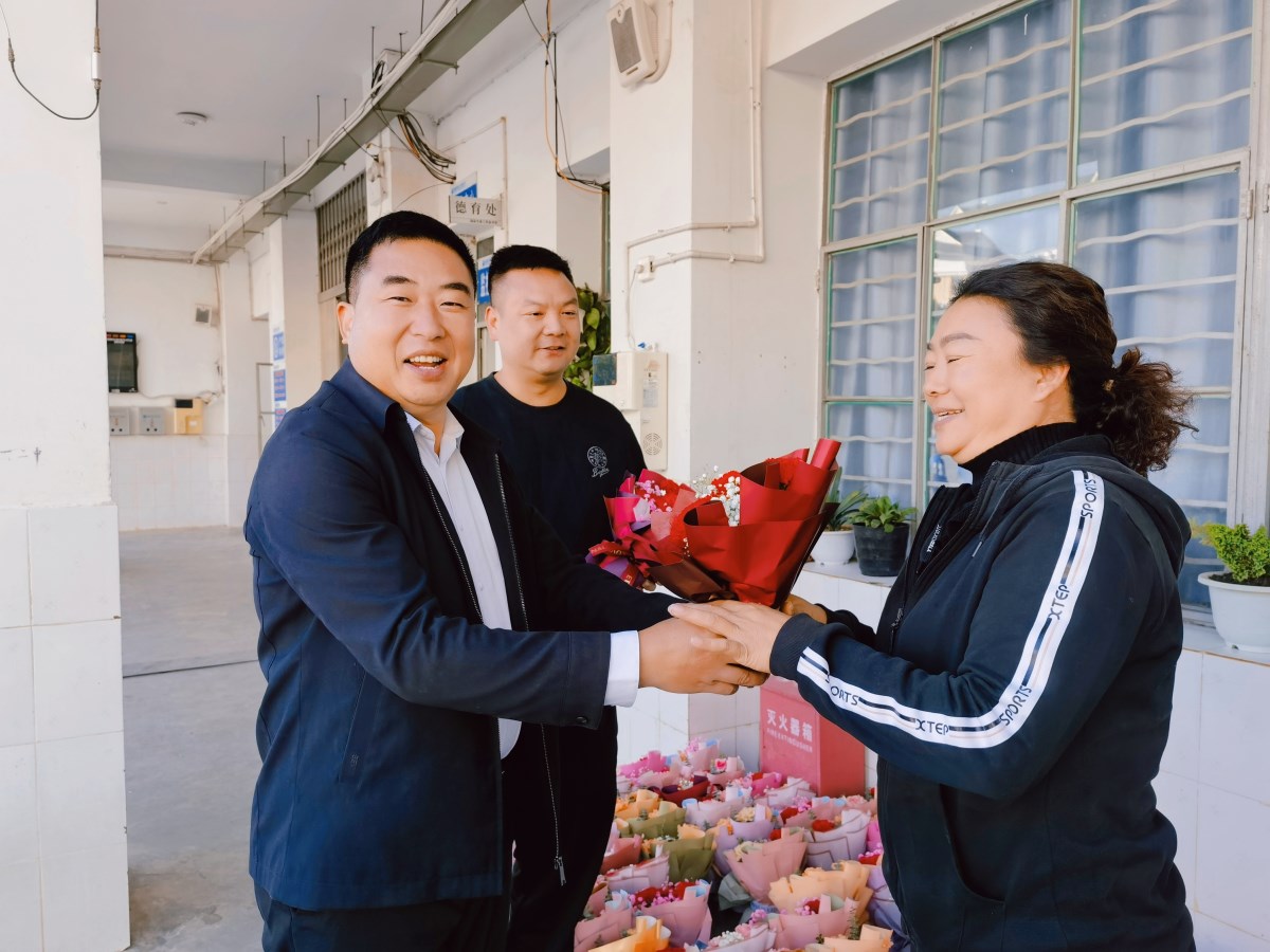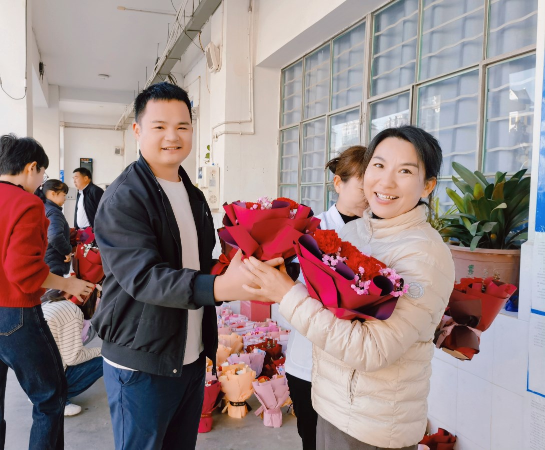 以花为礼,幸福相伴。学校领导班子为大家送上包装精美的鲜花并致以节日的祝福。一束束美丽的鲜花,一句句温暖的话语,代表了学校对女职工的关怀和祝福,不仅缓解了繁忙的工作压力,更营造了温暖和谐的氛围,使每位女职工充分感受到了节日的惊喜和仪式感。