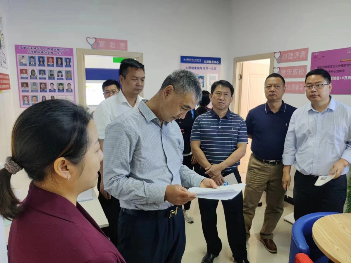 在汇报人员的介绍下,领导们对心理辅导中心的环境布置、设施配备以及专业人员的配备情况进行了详细了解。在听取讲解后,领导们对我校的心理健康工作给予了充分的肯定,充分体现了各级政府对青少年心理健康成长的深切关怀。王明山还在活动中强调,青少年是国家的未来和希望,他们的心理健康成长关系到国家的繁荣和稳定。学校作为培养青少年健康成长的重要阵地,要高度重视心理健康工作,加强心理健康教育和咨询,为青少年的健康成长保驾护航。