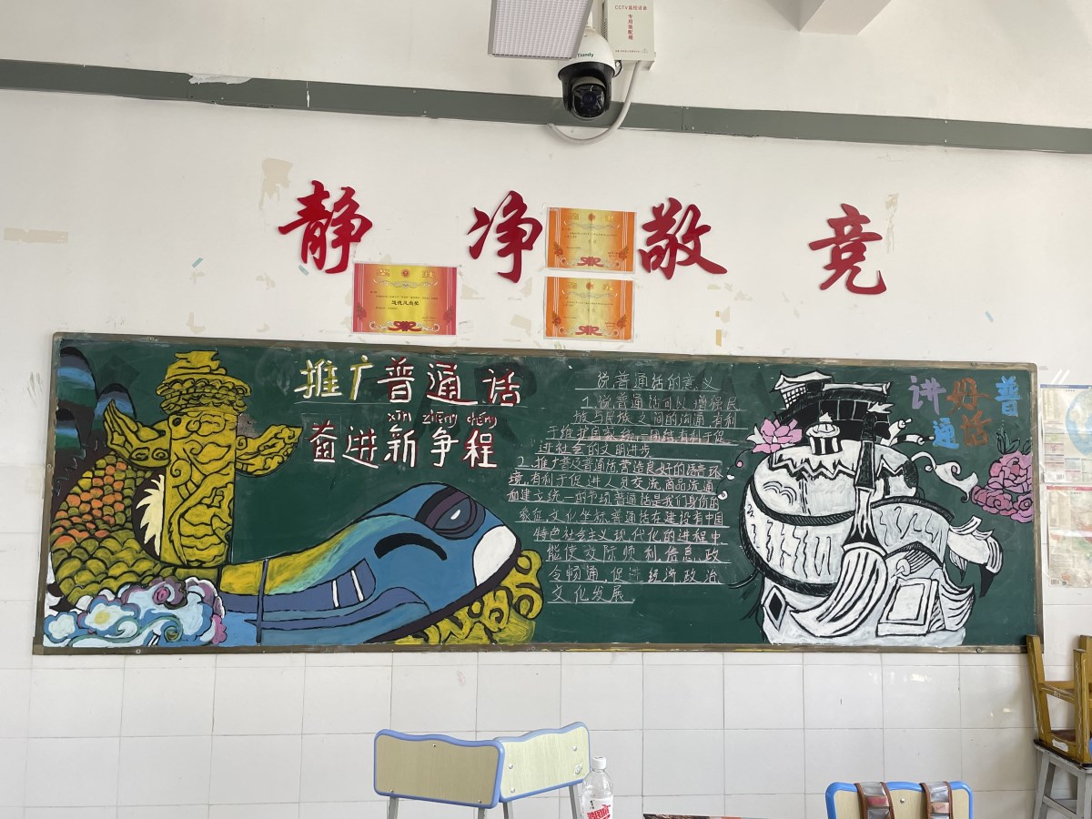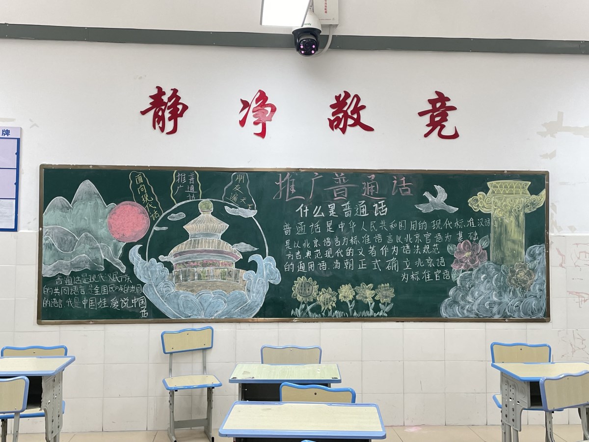 同时,班级黑板报活动也精彩纷呈。同学们用五彩的粉笔勾勒出一幅幅精美的图案,书写着推广普通话的标语和知识,成为校园里一道亮丽的风景线。