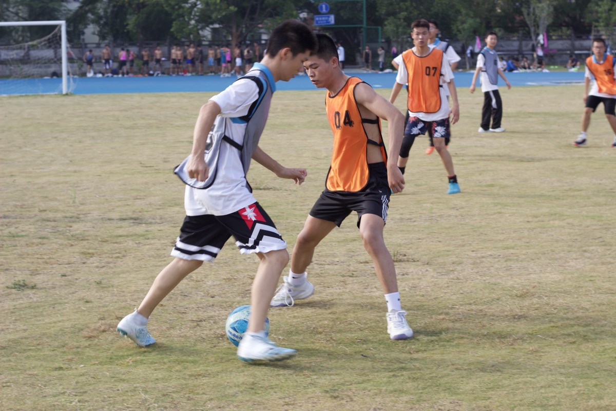 开球仪式过后,就开始了紧张刺激的比赛进程,足球场上两场比赛同时进行,同学们在绿茵场上挥洒汗水与泪水,每一位球员都拼尽全力为自己班级争取荣誉。站到场上时能感受到,每一次有威胁的打门、漂亮的配合时,场下的观众都会不遗余力地呐喊助威。
