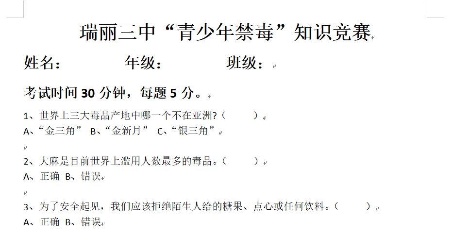 为检验教育成效,学校举办禁毒知识竞赛。参赛选手需在规定时间内完成涵盖毒品识别、法律法规、戒毒方法等内容的题目,以此激发学生学习禁毒知识的积极性,同时也为学生提供一个展示自我的舞台。