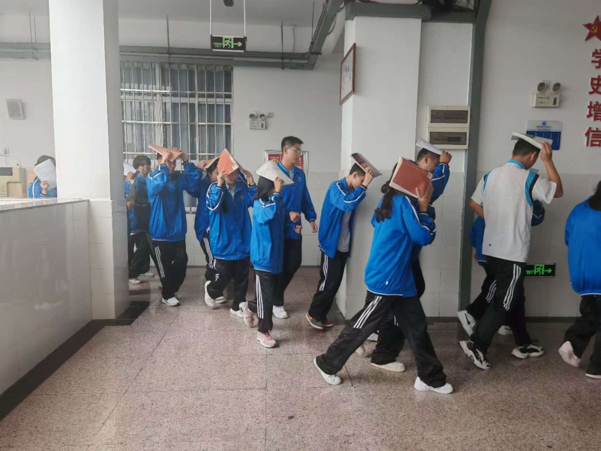 随着警报声的响起,安全演练正式开始。各班班主任、楼层教师迅速到达指定岗位,全体学生在教师的正确引领下,弯腰俯身,按演练前规划的安全逃生路线迅速向安全区域有序撤离。各年级到达指定位置后,班主任迅速维持秩序,及时清点人数并向负责人汇报,确保每位学生安全撤离,无一遗漏。