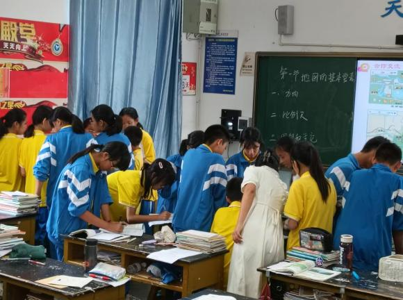 本堂课以播放《地图的前世今生》短视频来引入,随后,学生们齐读学习目标,明确了学习方向。课堂中,王老师采用小组合作探究的形式,引导学生们在交流与合作中突破重难点。同学们积极参与,思维的火花不断碰撞,课堂氛围较活跃。