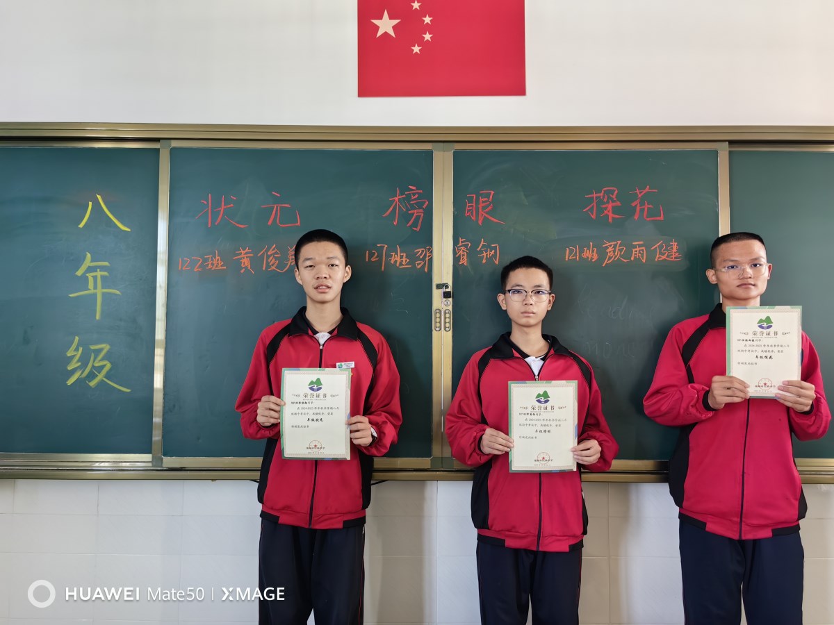 步入初二,同学们开始展现出更加成熟稳重的一面。状元黄俊翔,凭借扎实的基础和勤奋的态度,各科成绩均名列前茅。榜眼邵睿钢,他善于从错误中汲取教训,不断调整自己的学习策略与方法。探花颜雨健,虽然名次稍逊于状元与榜眼,但同样拥有着不俗的实力与潜力,在学习上勤奋努力,从不轻言放弃。