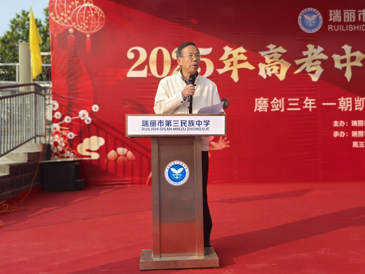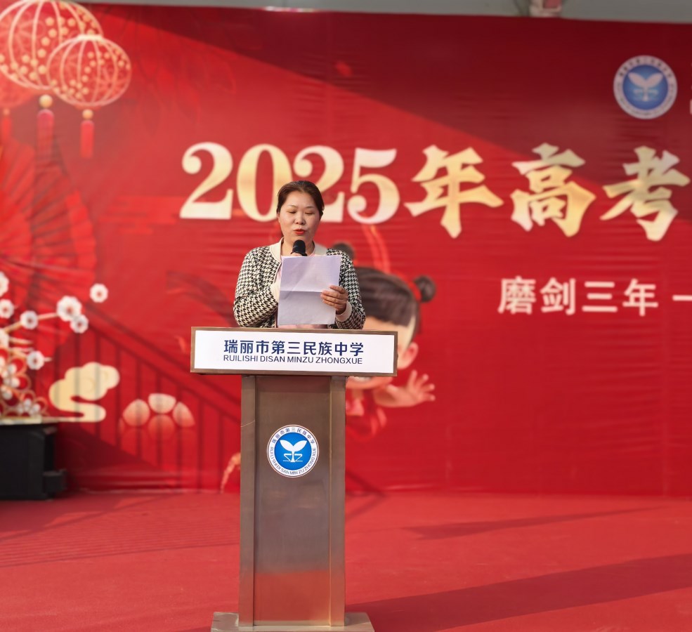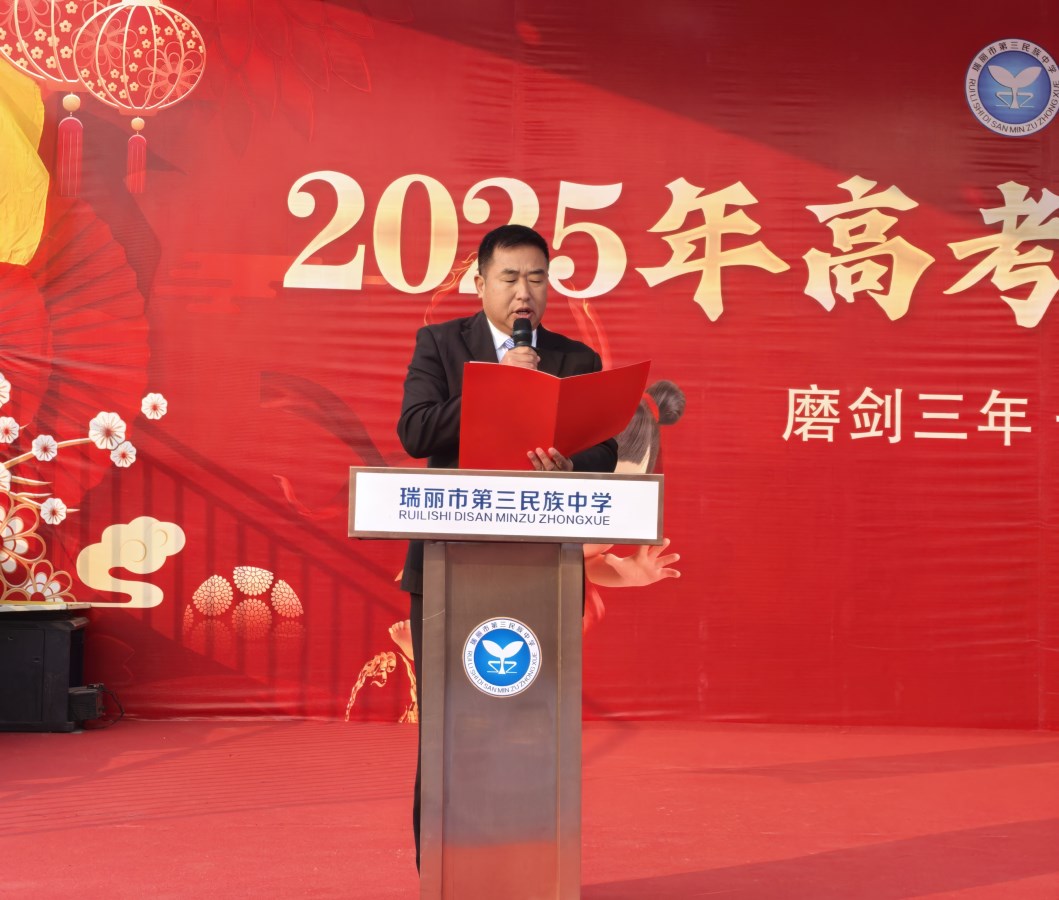 随后,瑞丽市第三民族中学党总支书记姚元波同志发表了热情洋溢的致辞。他回顾了学生们在学校的成长历程,对他们取得的进步表示肯定,并对他们即将开启的人生新篇章寄予厚望。姚书记的话语如同温暖的阳光,照亮了每一位学生的心田。
