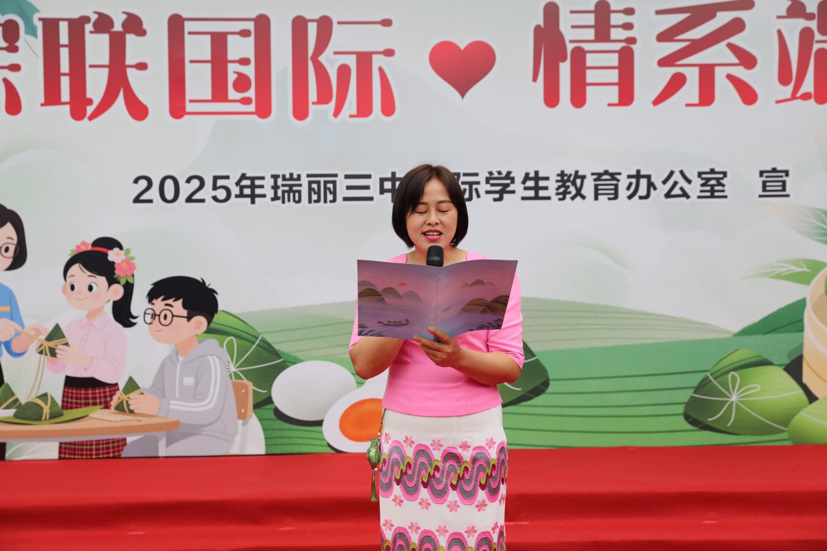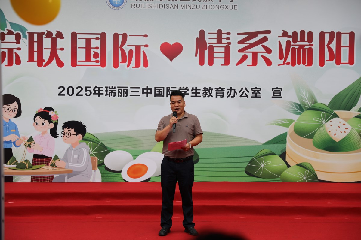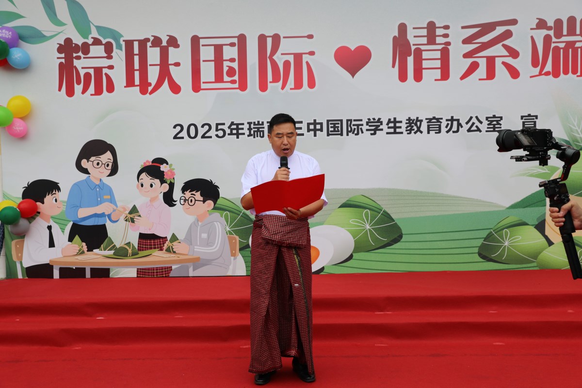瑞丽市委统战部黄永城领导以端午节的文化内涵为切入点,深刻阐述了这一传统节日作为中华文明重要标识的当代价值;书记则从教育实践的角度,分享了学校在传统文化传承中的创新探索;国际学生家长的动情讲述,让现场观众感受到端午习俗背后绵长的家国情怀。