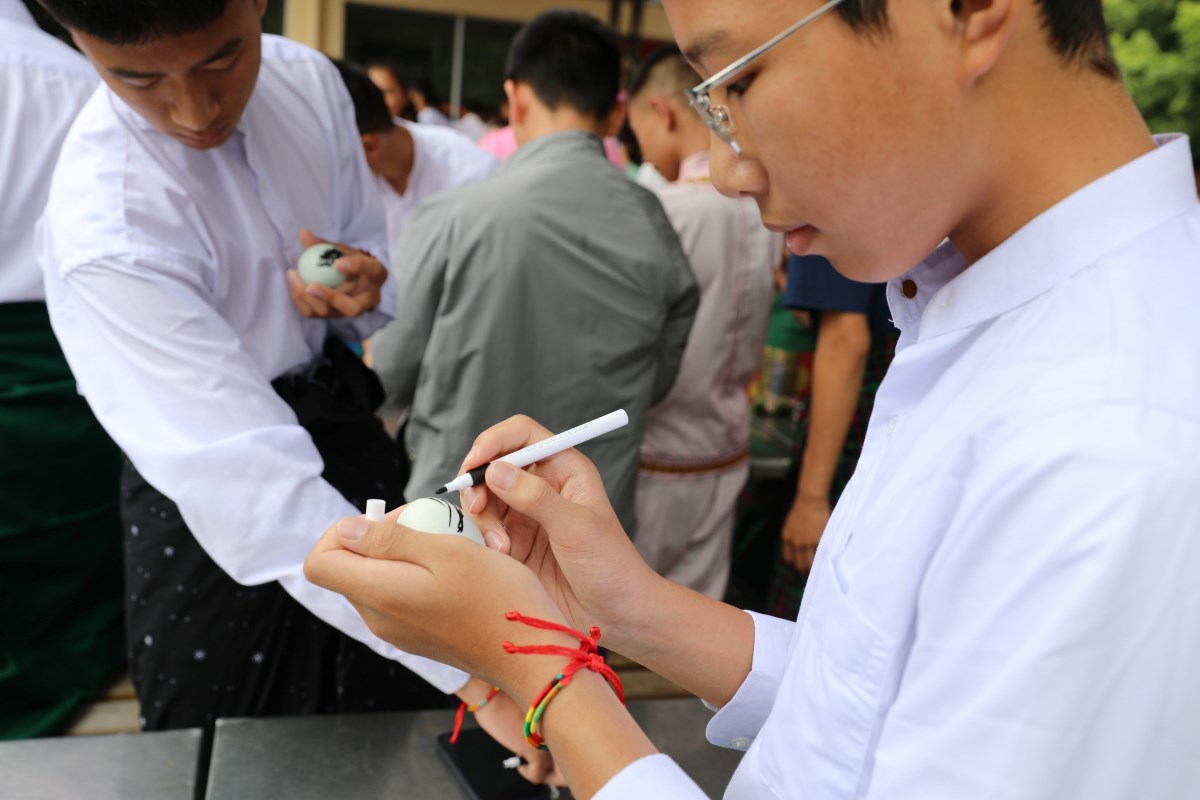 在活动现场,最热闹的要数体验区了,本次端午节活动设置了四个环节:匠心粽艺坊里,缅甸家长手把手教中国孩子包三角粽,“米别放太多,要像这样折角……”,国际学生们巧手翻飞,将一片粽叶化作传统文化的载体,包出饱满圆润的粽子;端午花艺坊中,艾草的清香伴随着欢声笑语,传递着古人“悬艾禳毒”的生活智慧,调皮的男生在鸭蛋上画了个“粽子超人”,引得围观同学咯咯笑;彩绘鸭蛋坊内,五彩斑斓的创意绘制让传统习俗焕发新生;在品尝粽子时,大家都露出笑容,都纷纷赞扬粽子的美味。这些沉浸式的体验活动,让参与者真切感受到传统文化的独特魅力。
