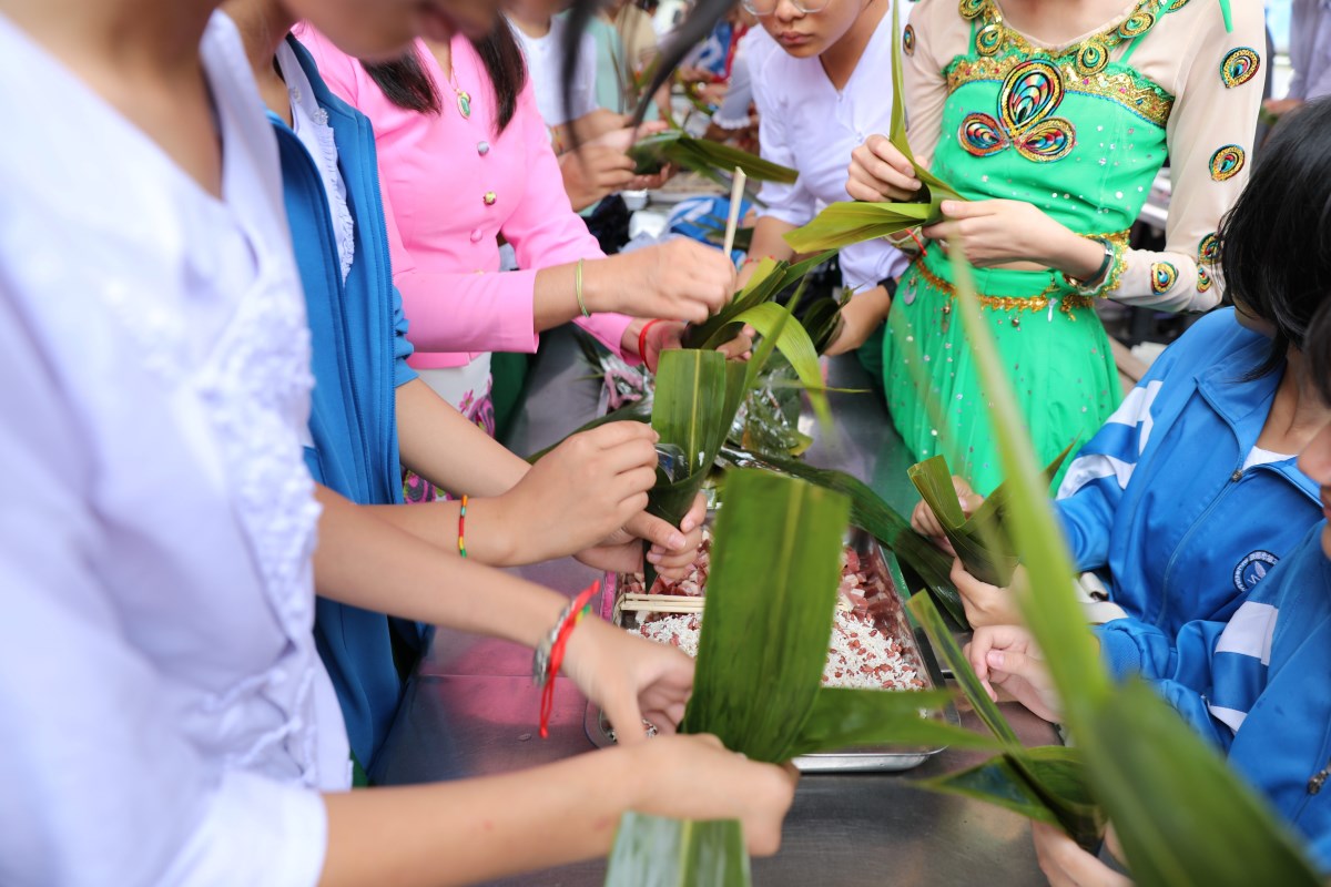 五月端午,草木葱茏,粽叶飘香。5月27日上午,瑞丽市第三民族中学的校园里格外热闹。粽叶的清香混着艾草的芬芳,桌上摆满了五彩绳和彩绘鸭蛋,孩子们的笑脸比阳光还灿烂。“粽联国际·情系端阳”端午节活动在这里温情上演,师生、家长和国际朋友们像一家人一样,包粽子、编彩绳、话家常,让传统文化在指尖和心头暖暖流淌。