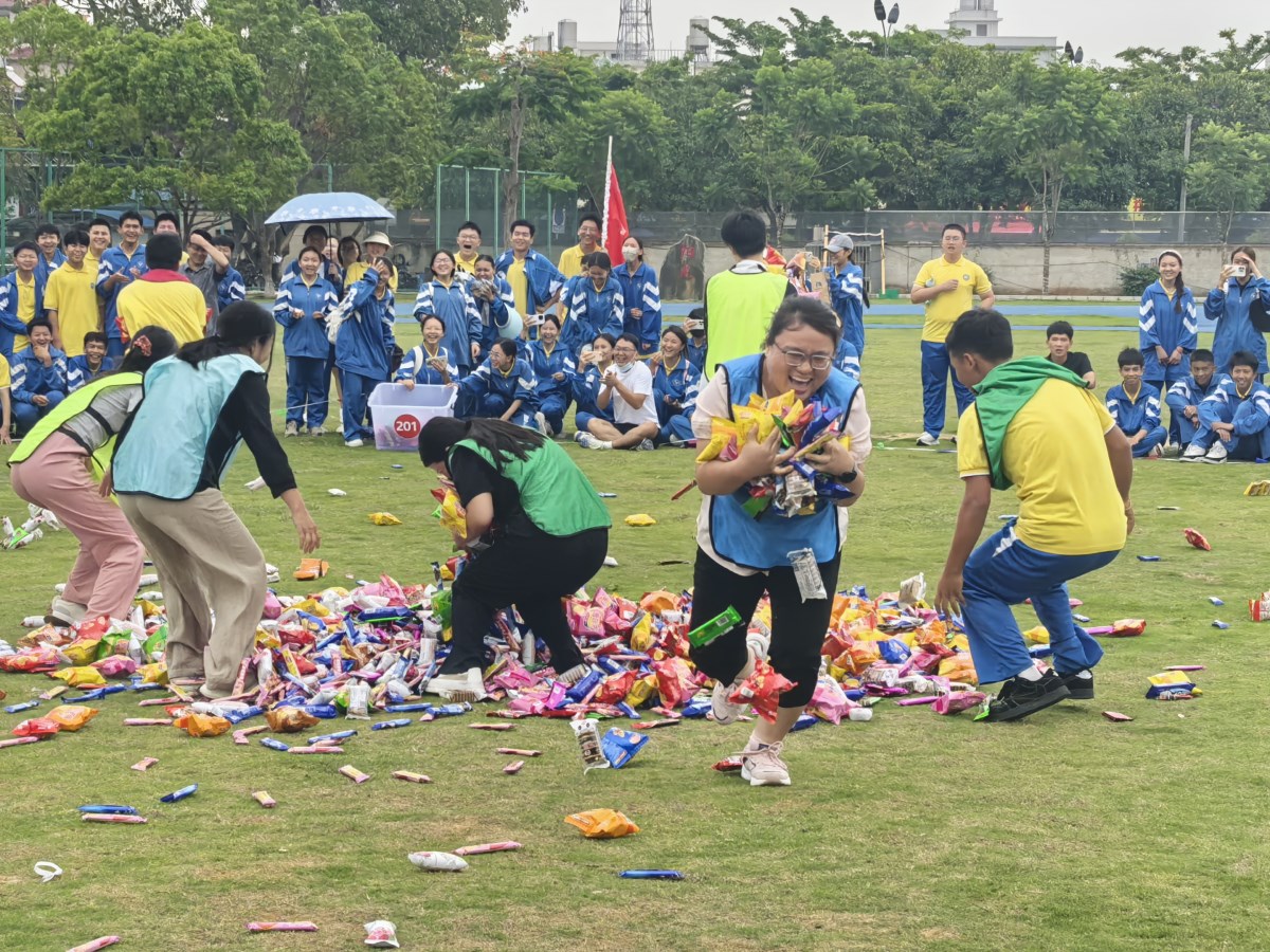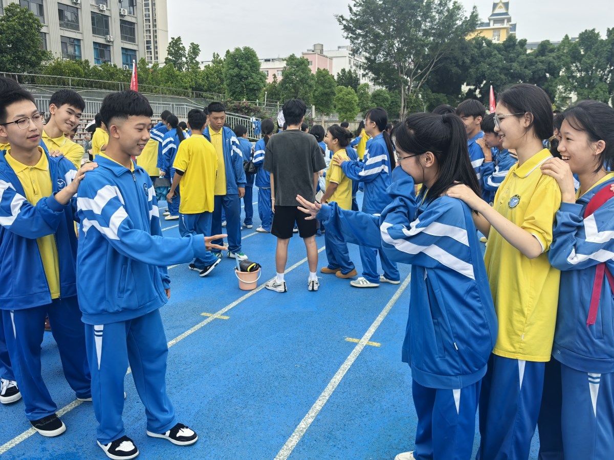 解压活动通过一系列精心设计的解压团体游戏和互动环节:“节奏按摩操”、“划拳贪吃蛇”、“零食大作战”。学生、老师们在欢声笑语中释放了压力,舒缓了紧张情绪。同学们纷纷表示,这次活动不仅让他们身心得到了放松,还增进了与同学、老师之间的感情,让他们更加坚定了中考必胜的信心。许多学生在活动后表示,将以更加积极乐观的心态迎接中考,努力实现自己的目标。