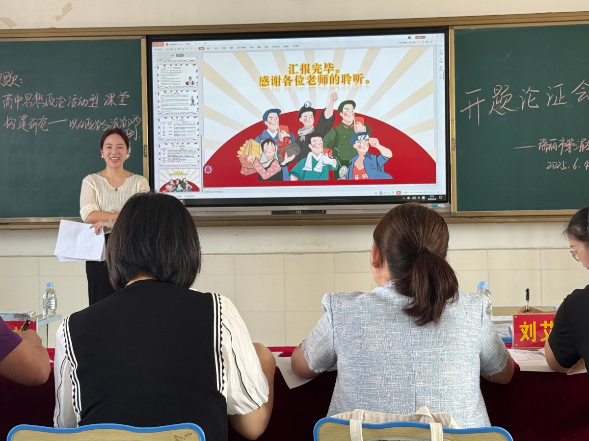 会议伊始,课题组负责人陈潇老师进行了开题报告陈述。陈老师从研究背景出发,深入剖析了当前高中思想政治课堂中存在的问题以及活动型课堂构建的迫切需求。接着,详细阐述了课题的研究目标,即探索出适合高中生的思想政治活动型课堂模式,提升学生的思想政治素养和综合能力。在研究内容方面,涵盖了活动型课堂的教学设计、实施策略、评价体系等多个维度。同时,介绍了课题将采用多种研究方法,并制定了详细的实施计划,明确了各阶段的研究任务和时间节点。