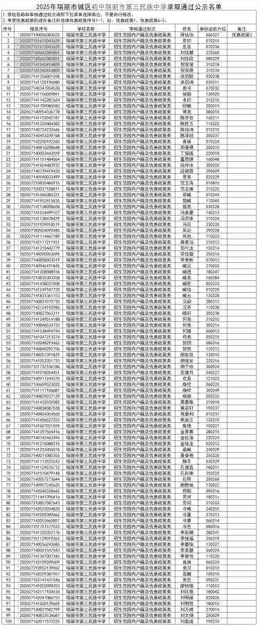 附:2025年瑞丽市第三民族中学录取通过公示名单
