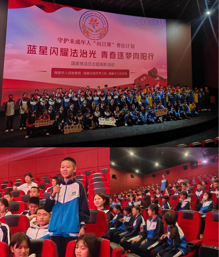 2025年12月2日,瑞丽市人民检察院“国门·青柚未检”团队等多部门联合瑞丽市民族中学,组织师生赴瑞丽市正佳电影院开展“防性侵、防欺凌、防毒品”暨爱国主义教育活动。活动中,检察官结合边疆校园实际,以案例解析“三防”法律知识与自我保护方法,引导同学们认清违法犯罪的危害,学会运用法律武器守护自身权益。将“学法、懂法、守法、用法”的理念根植于心。