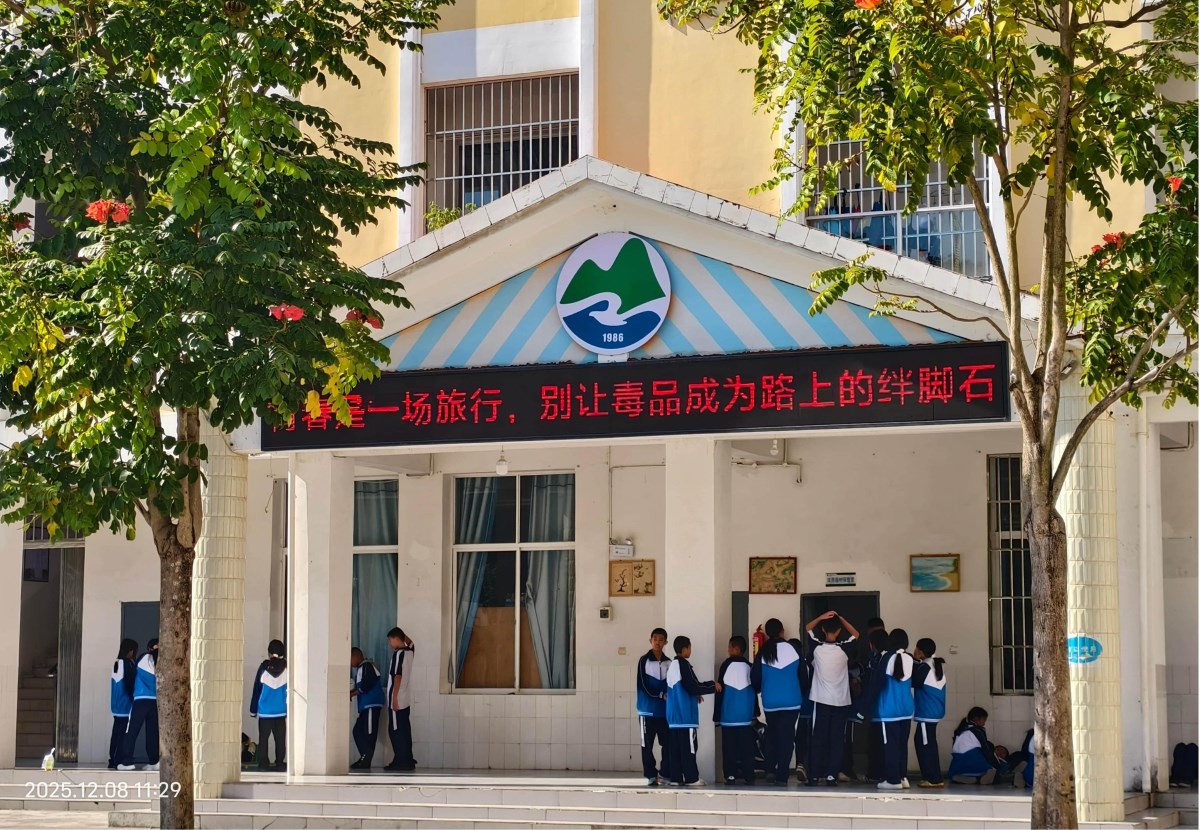 校园电子屏持续滚动播放“珍爱生命,远离毒品,让青春更加绚烂”“青春是一场旅行,别让毒品成为路上的绊脚石”等宣传标语,在教学楼、走廊等公共区域形成常态化警示氛围,时刻敲响禁毒警钟。