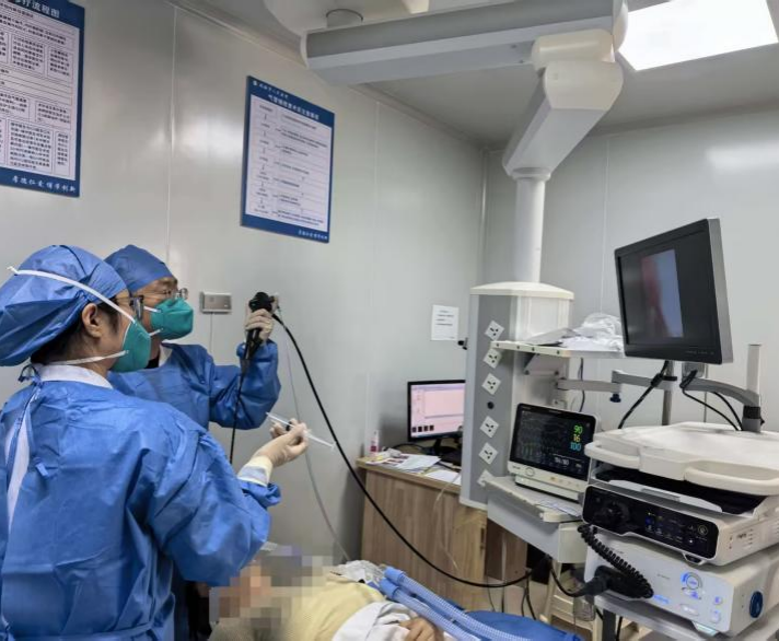 瑞丽市人民医院北院区老年医学科(呼吸与危重症医学科)杨西主治医师会诊患者后建议完善无痛支气管镜检查及肺泡灌洗术协助诊治,支气管镜精准抵达病灶肺段获取肺泡灌洗液送检细菌培养、NGS宏基因组测序。