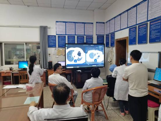 画面中,医护人员围站在大屏前,聚焦肺部CT影像,细致分析病灶特征、深入探讨诊断思路,每一处细节都清晰呈现,每一个观点都充分交流。相较于以往的小屏设备,大屏系统让影像对比更直观、团队协作更高效,不仅提升了疑难病例的诊断准确率,更在交流中促进了年轻医师的成长,营造出“传帮带、共提升”的良好科室氛围。
