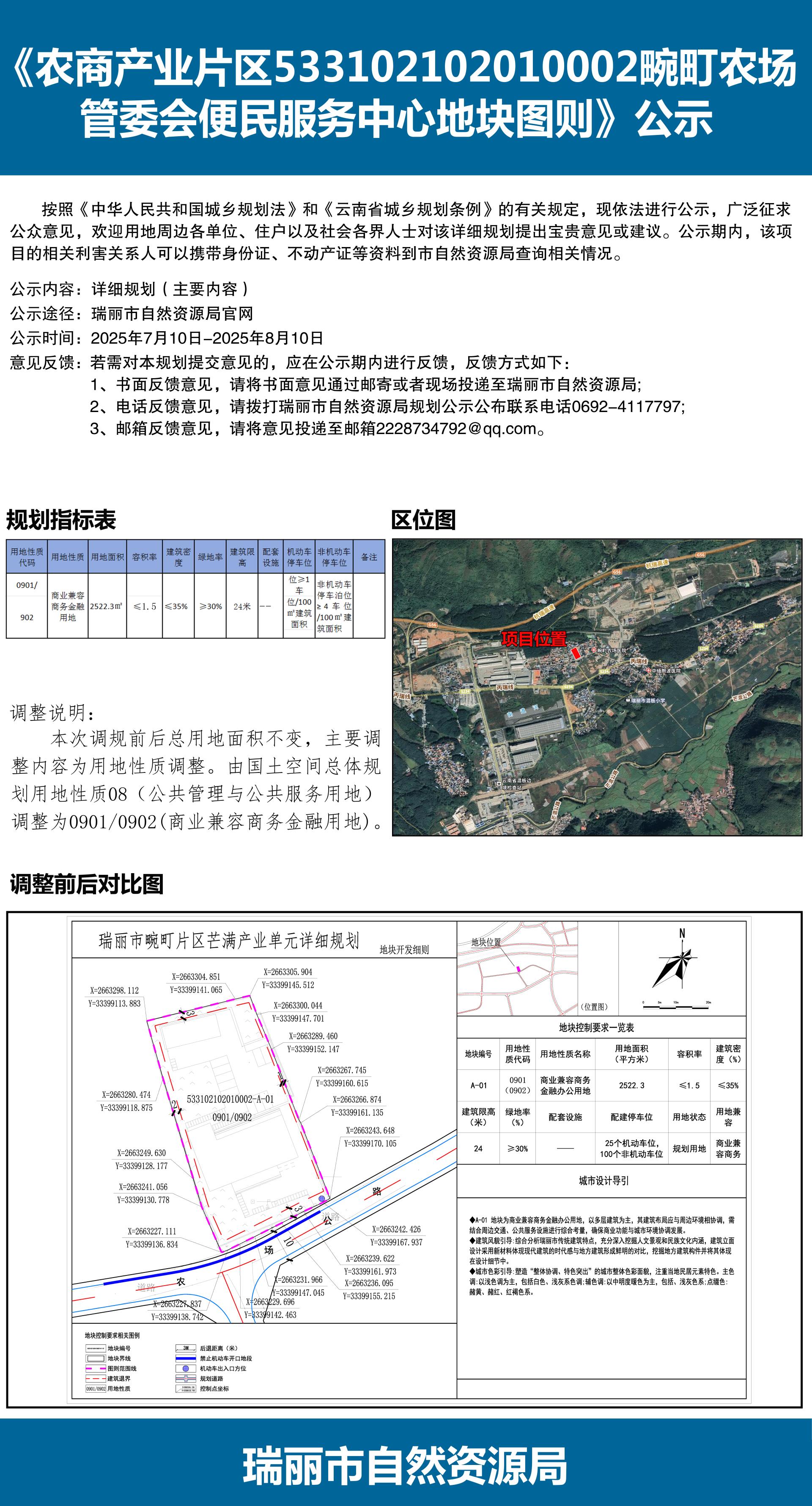 《农商产业片区533102102010002畹町农场管委会便民服务中心地块图则》公示