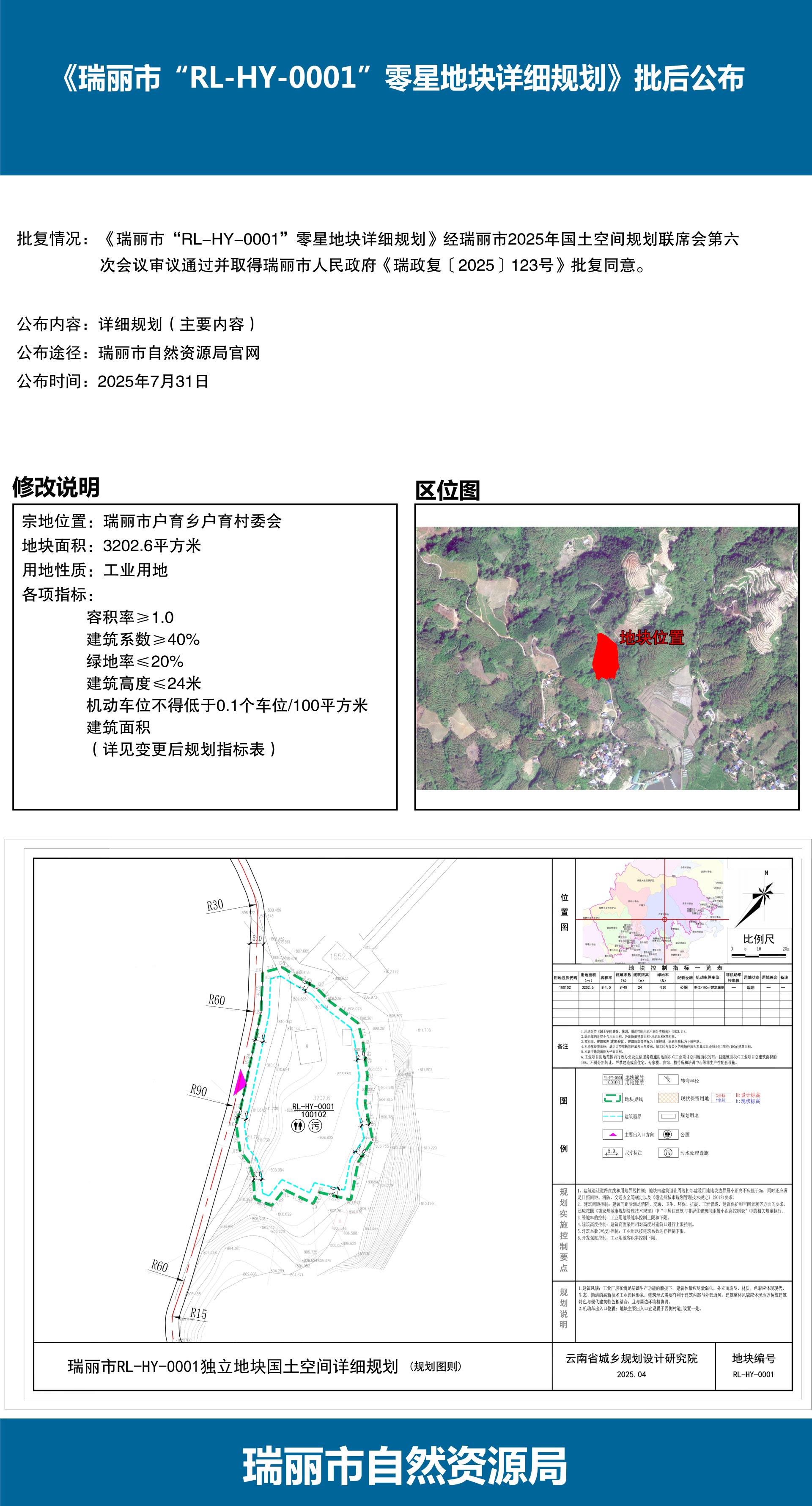 《瑞丽市“RL-HY-0001”零星地块详细规划》批后公布