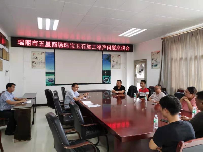 珠宝玉石产业为瑞丽市重要产业之一,珠宝玉石加工逐步形成了一个个聚集区域,由此引发大量噪声投诉问题。为了解决处置好五星商城的噪声扰民问题,有效化解五星商城玉石加工产生的矛盾纠纷问题,德宏州生态环境局瑞丽分局于2019年10月16日,召集五星商城物业公司及相关方代表,到我局开展座谈会,主要研究讨论五星商城噪声扰民具体整治措施。
