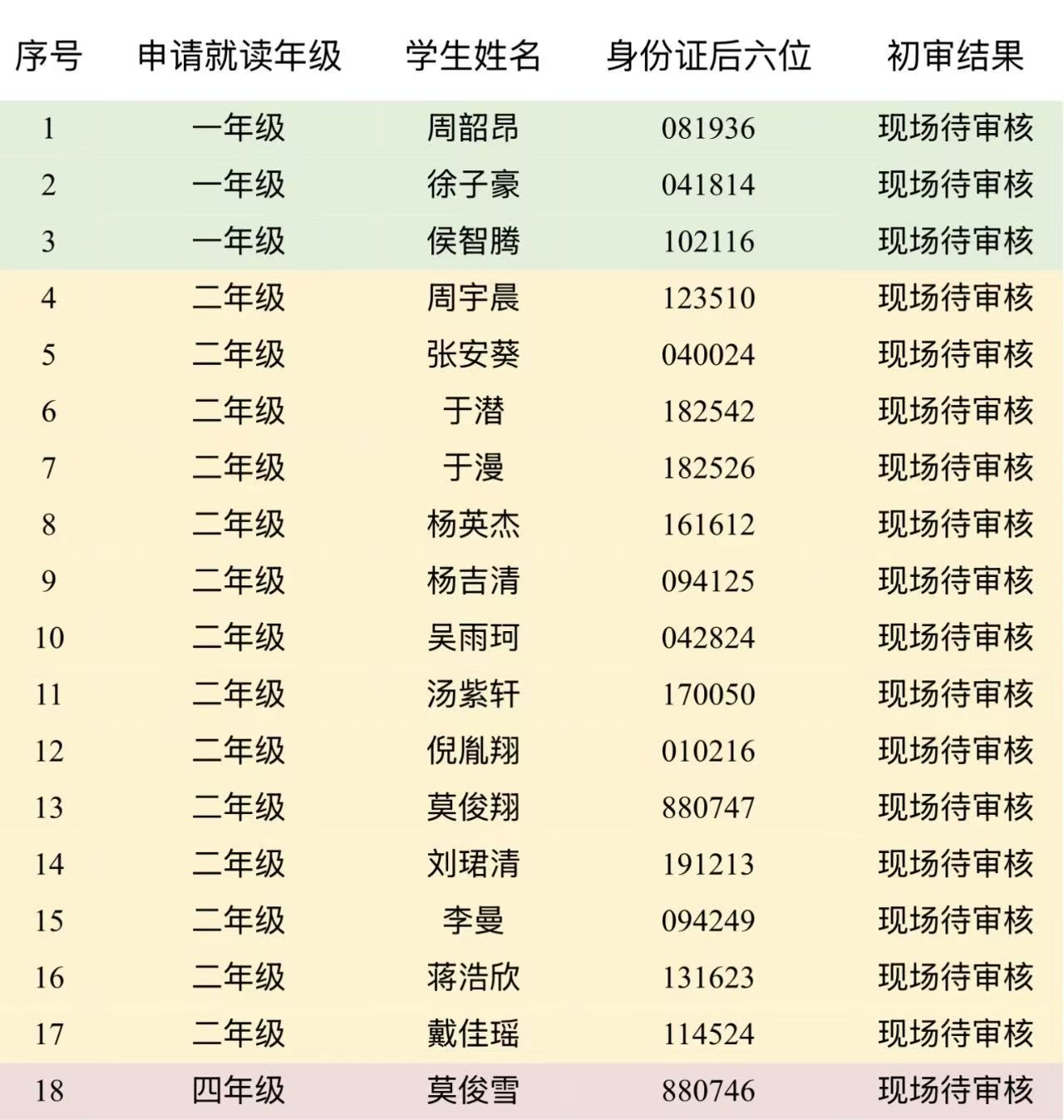一、报名初审信息公示(公布信息为报名信息符合本校招生条件的学生)
