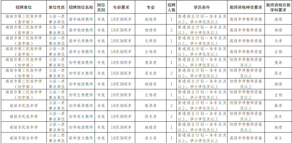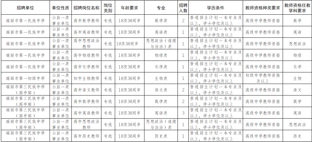 为加强教师队伍建设,改善专业技术人员队伍结构,缓解教师队伍人才紧缺问题,进一步提高教育教学质量,根据《云南省事业单位公开招聘工作人员办法》(云人社发〔2016〕12号)及《2026年德宏州教育部门考核招聘紧缺专业学科优秀人才工作方案》,我市教体系统考核招聘紧缺专业学科优秀人才32名。现将有关事宜公告如下: