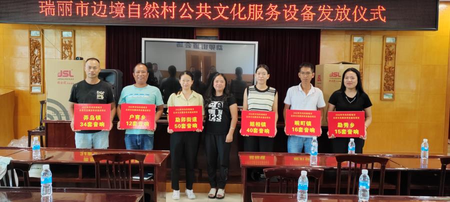 9月14日下午,市文化和旅游局在勐卯街道举行瑞丽市边境自然村公共文化服务设备发放仪式。市文化馆、勐卯街道、姐相镇、弄岛镇、户育乡、勐秀乡、畹町镇文化站负责人参加发放仪式。