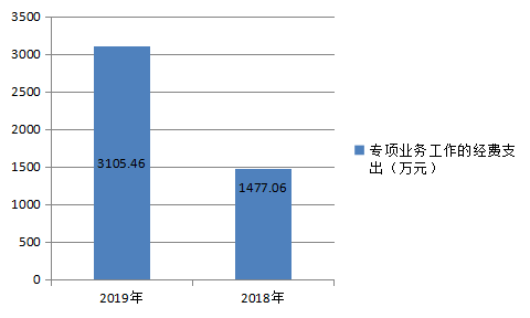 2019年度用于保障瑞丽市中医傣医医院机构、下属事业单位等机构为完成特定的行政工作任务或事业发展目标,用于专项业务工作的经费支出3,105.46万元。与上年对比增加1628.4万元,主要是因为2019年我院新院区综合业务用房建设项目支出增加,目前该建设项目一期已基本完工,但尚未投入使用;其他项目支出主要用于商品和服务支出、设备购置费 、专用材料费等日常开支。