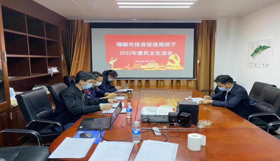 2月13日下午,瑞丽市投资促进局班子召开2022年度民主生活会,会议由党支部书记、局长姚承虎主持,市委第七督导组副组长李维志同志到会指导。